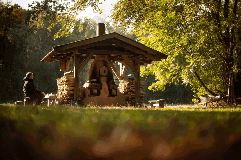 Wir brennen einmal im Jahr im Oktober diese besonderen Raku Teeschalen im Wendland auf dem Werkhof Kukate. Dort steht ein mit Lehm verkleidete Ofen mit vier Kammern und zwei Feuerstellen. (Informationen zur Entstehung dieses Ofens über Mathias Stein, siehe unter "Freunde")